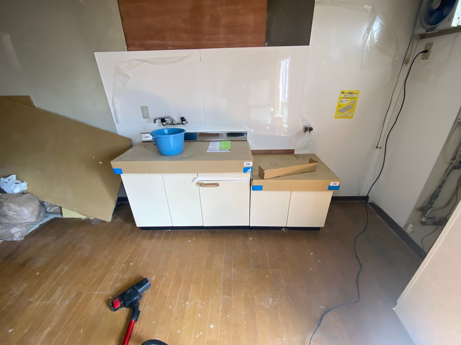 姫路市網干にておこなった古民家リフォームの様子です。 土壁全面のパテ施工、クロス張り、クッションフロア施工をおこないまし...
