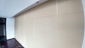 まず既存の壁面の上から石膏ボードを張り、新しい壁の下地を作ります。